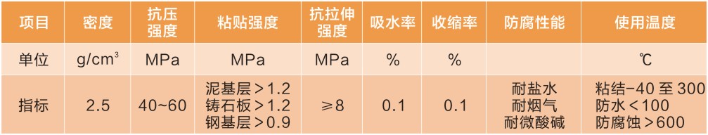 性質:該膠泥為水硬性材料,與水泥基層、陶瓷類耐磨工業板材具有良好的粘結強度,防水抗滲好,耐煙氣的腐蝕。