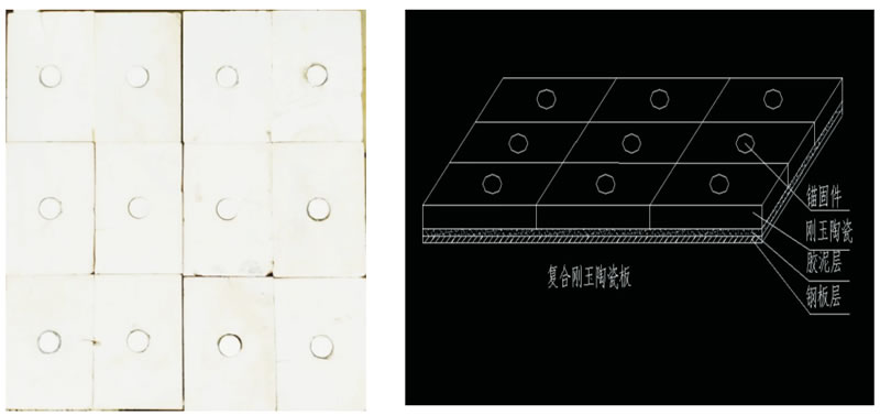 復合剛玉陶瓷產品是我公司根據水泥行業、鋼鐵行業、煉焦行業現場實際情況研制開發的新型科技制品,剛玉陶瓷模氏硬度達9個級品,是目前耐磨耐磨材料極品,該制品制作工藝先進,設計合 理,高質量的剛玉陶瓷,制成復合板后具有極強的耐磨性,并有較高的耐沖擊性; 可根據使用單位的設備實際尺寸而訂制加 工,安裝施工方便,克服了水泥等行業物料淄管,斗倉,等冬季和急搶修施工帶來的諸多難題。