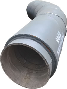 該產品是我公司根據國內其它復合制品而改制的一種新型耐磨陶瓷類管件。它的優點在于耐磨板與鋼體之間采用雙重加固措施,使其防脫落、抗壓、抗震、抗沖擊、防水等性能大大增強,克服了普通復合制品易脫落、易碎而堵設備的后顧之憂,主要應用于爐一次風管、分配器、出灰管路、易損管件;可加工任意規格的管件。現已大量推廣在水泥、電力、礦山冶金等。